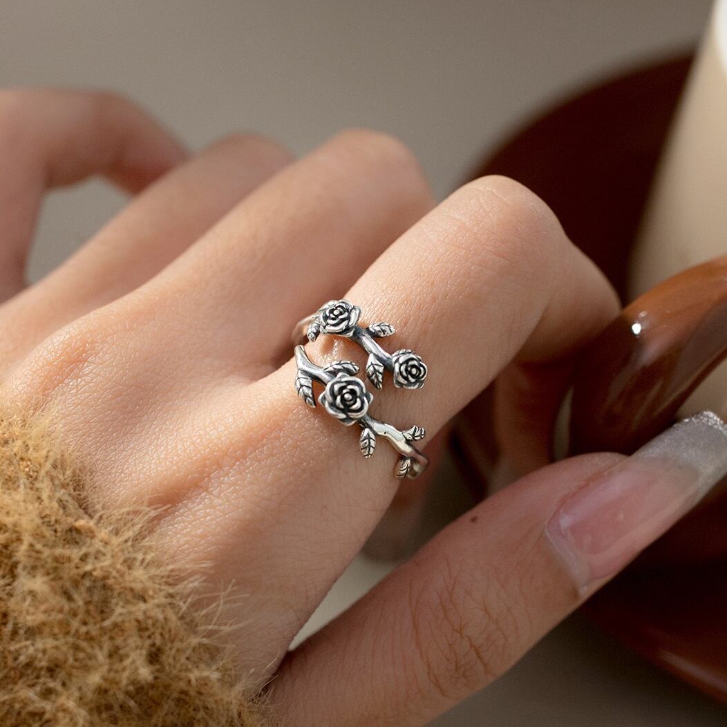 シルバー925 燻し銀 薔薇 リング 指輪 silver925 フリーサイズ 大きさ調整可能