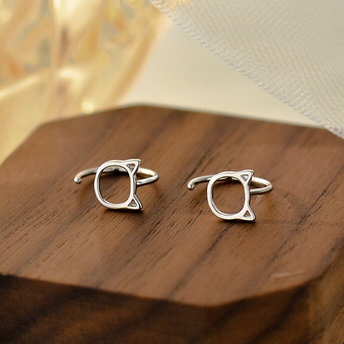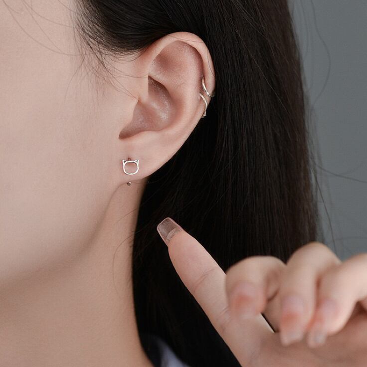 シルバー925 小ぶり ネコ フックピアス つけっぱなし 小さめ ピアス 金屬アレルギー対応 セカンドピアス 重ねつけ