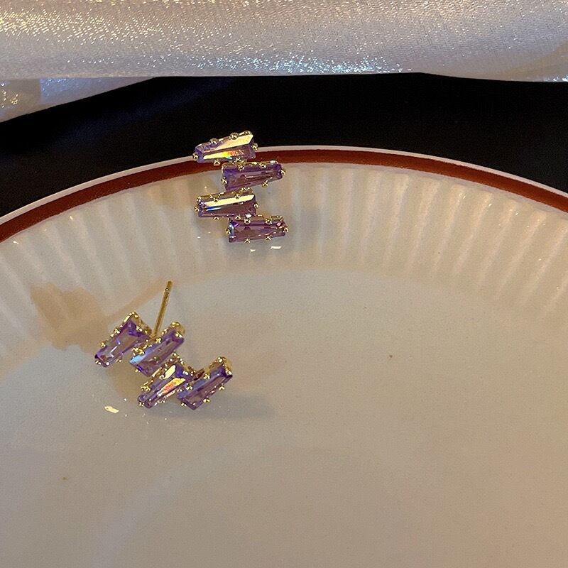 シルバー925 小ぶり 幾何形 パープル ピアス つけっぱなし 小さめ ピアス 金屬アレルギー対応 セカンドピアス 重ねつけ