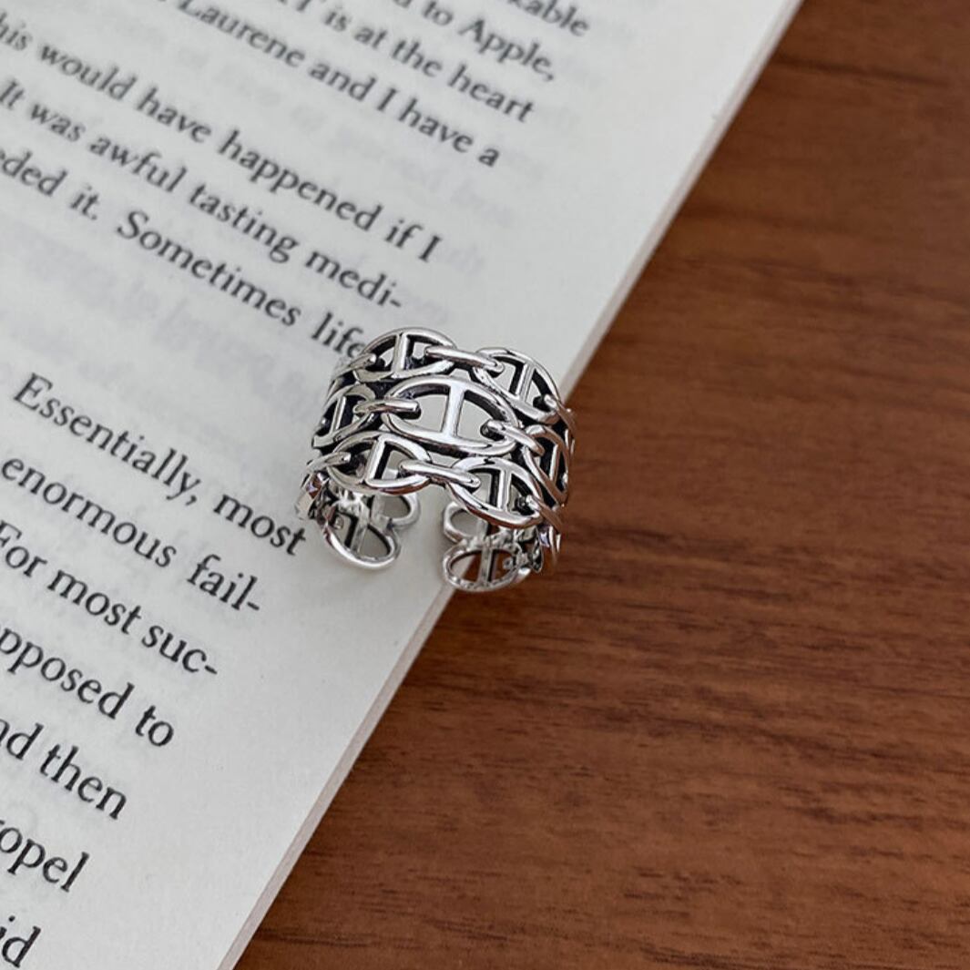 シルバー925 幅広 燻し銀 透かし リング 指輪 silver925 フリーサイズ 大きさ調整可能