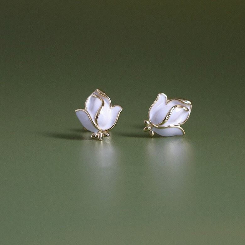シルバー925 小ぶり ハクモクレン ピアス つけっぱなし ピアス 金屬アレルギー対応 セカンドピアス 重ねつけ