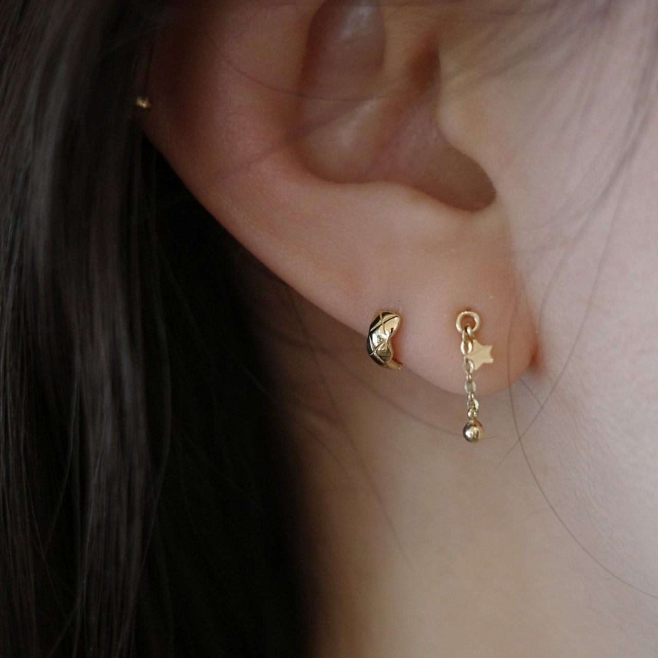 シルバー925 小ぶり 菱形 軟骨 フープピアス 金属アレルギー対応 小さめ セカンドピアス 925銀 E1076