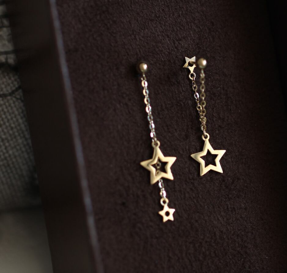 シルバー925 2way チェーン ダブル星 ピアス つけっぱなし ピアス 金屬アレルギー対応 セカンドピアス 重ねつけ