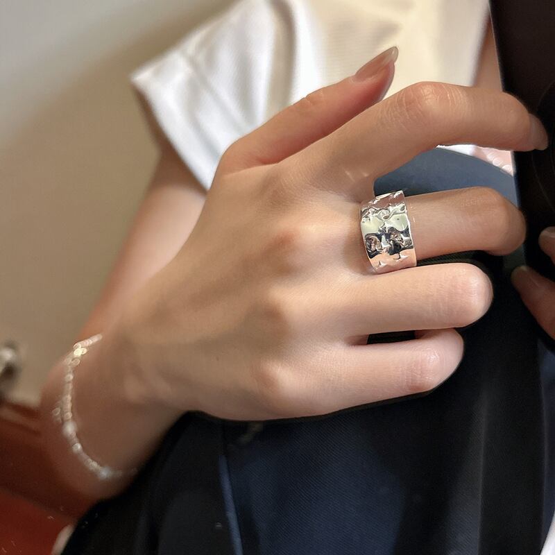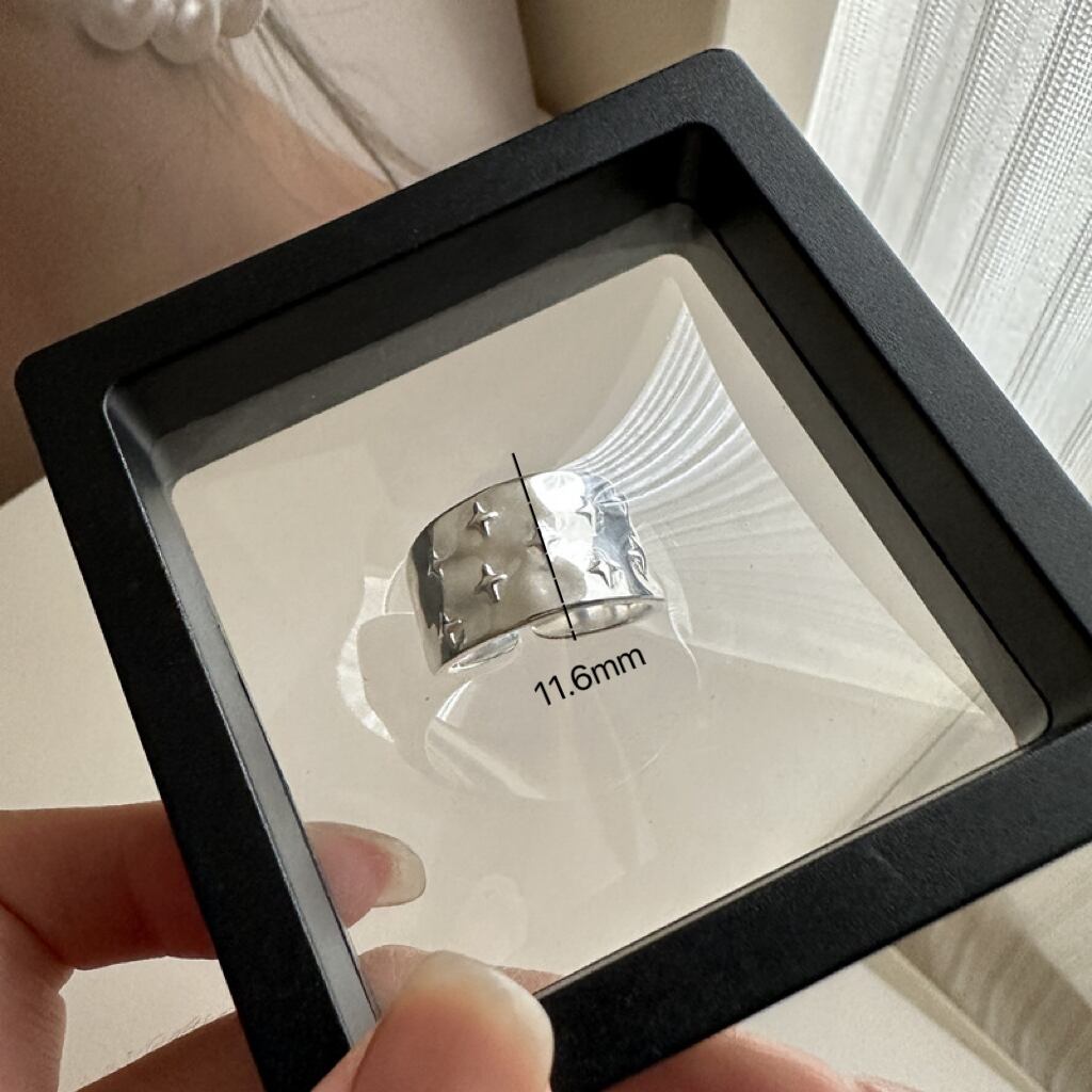 指輪 シルバー925 幅広 星 フリーサイズ 金属アレルギー対応 重ねつけ ファッションリング