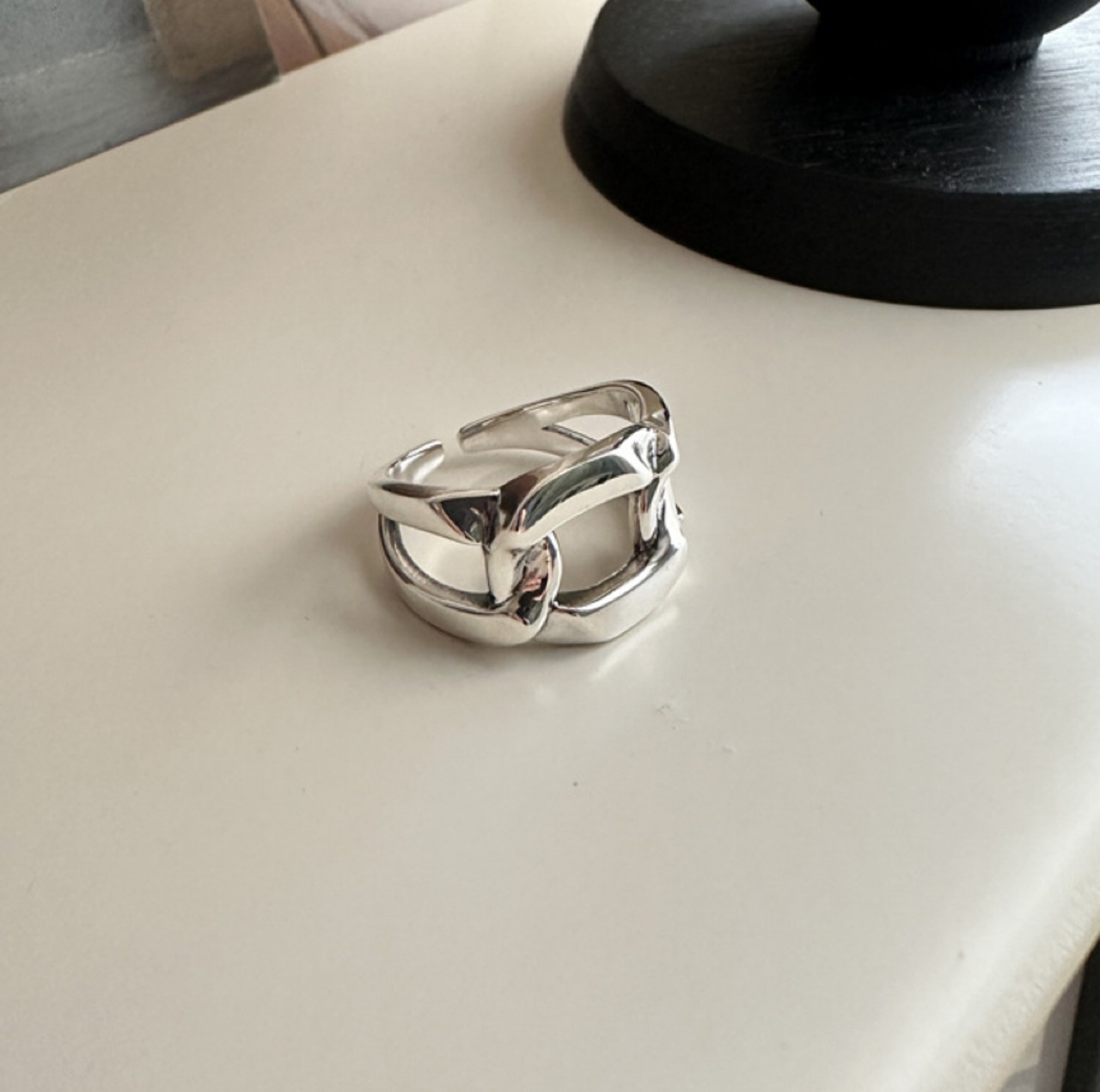 指輪 シルバー925 幅広 チェーン リング フリーサイズ 金属アレルギー対応 重ねつけ ファッションリング