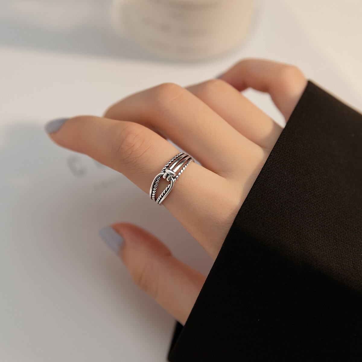 【J9073】シルバー925 燻し銀 幅広 指輪 silver925 フリーサイズ 大きさ調整可能
