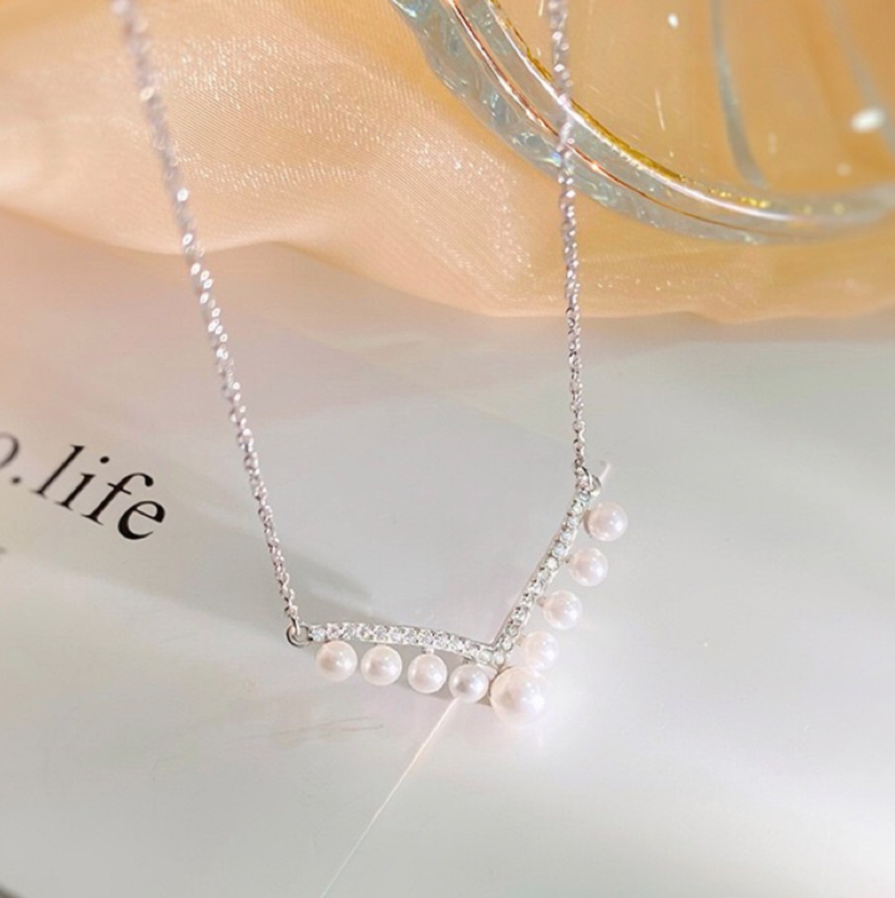 シルバー925 高見え V型 パール チャーム ペダント ネックレス
