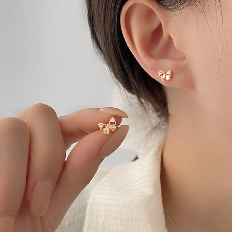 【9621】シルバー925 小ぶり 蝶々 ピアス つけっぱなし 小さめ ピアス 金屬アレルギー対応 重ねつけ