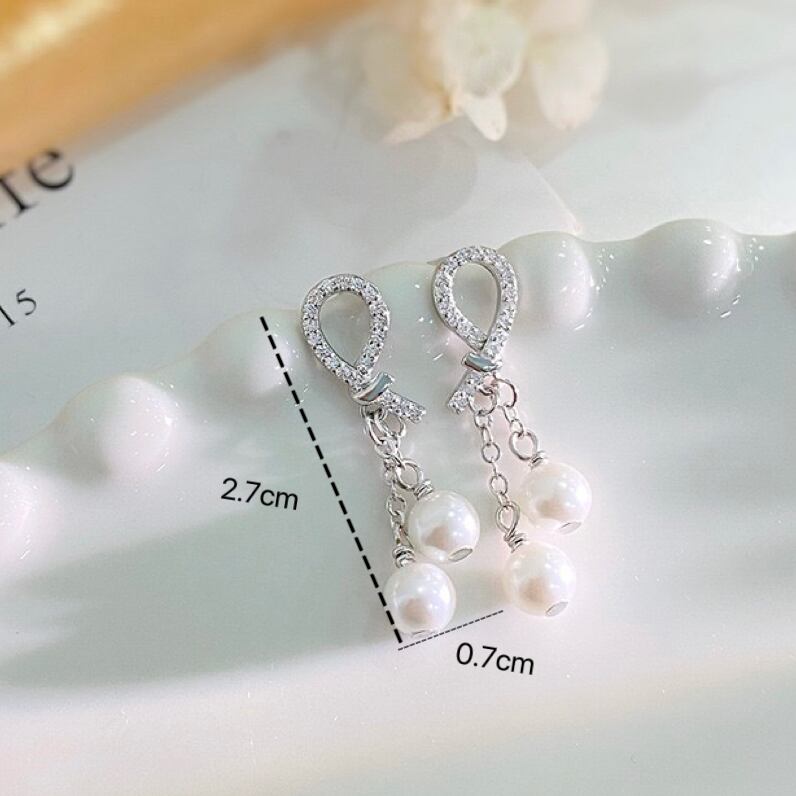 【9835】シルバー925 揺れる 結び目 リボン パール ピアス つけっぱなし 小さめ ピアス 金屬アレルギー対応 重ねつけ