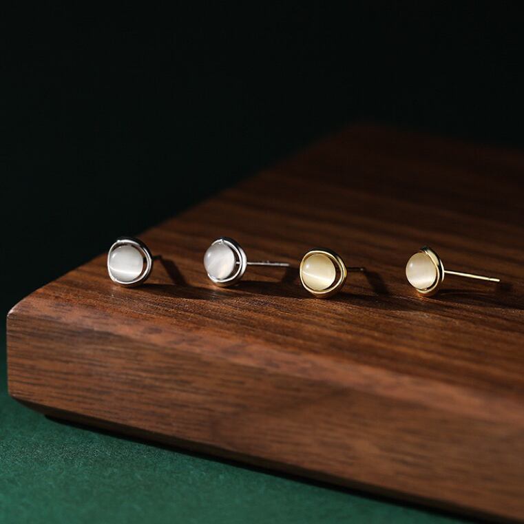 シルバー925 小ぶり キャツアイストーン ピアス つけっぱなし 小さめ ピアス 金屬アレルギー対応