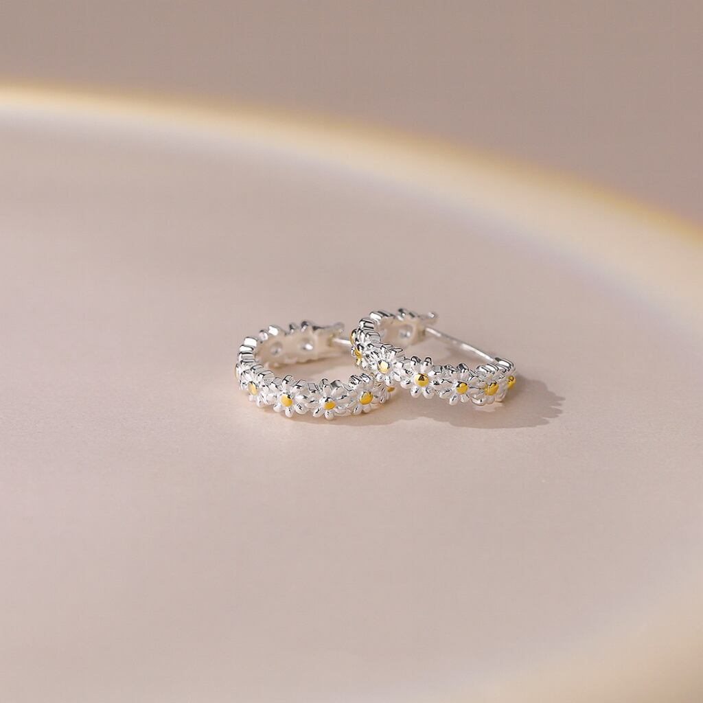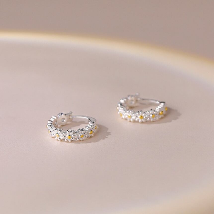 【E2551】シルバー925 小ぶり カモミュール フープピアス つけっぱなし ピアス 金属アレルギー対応 小さめ セカンドピアス 重ねつけ
