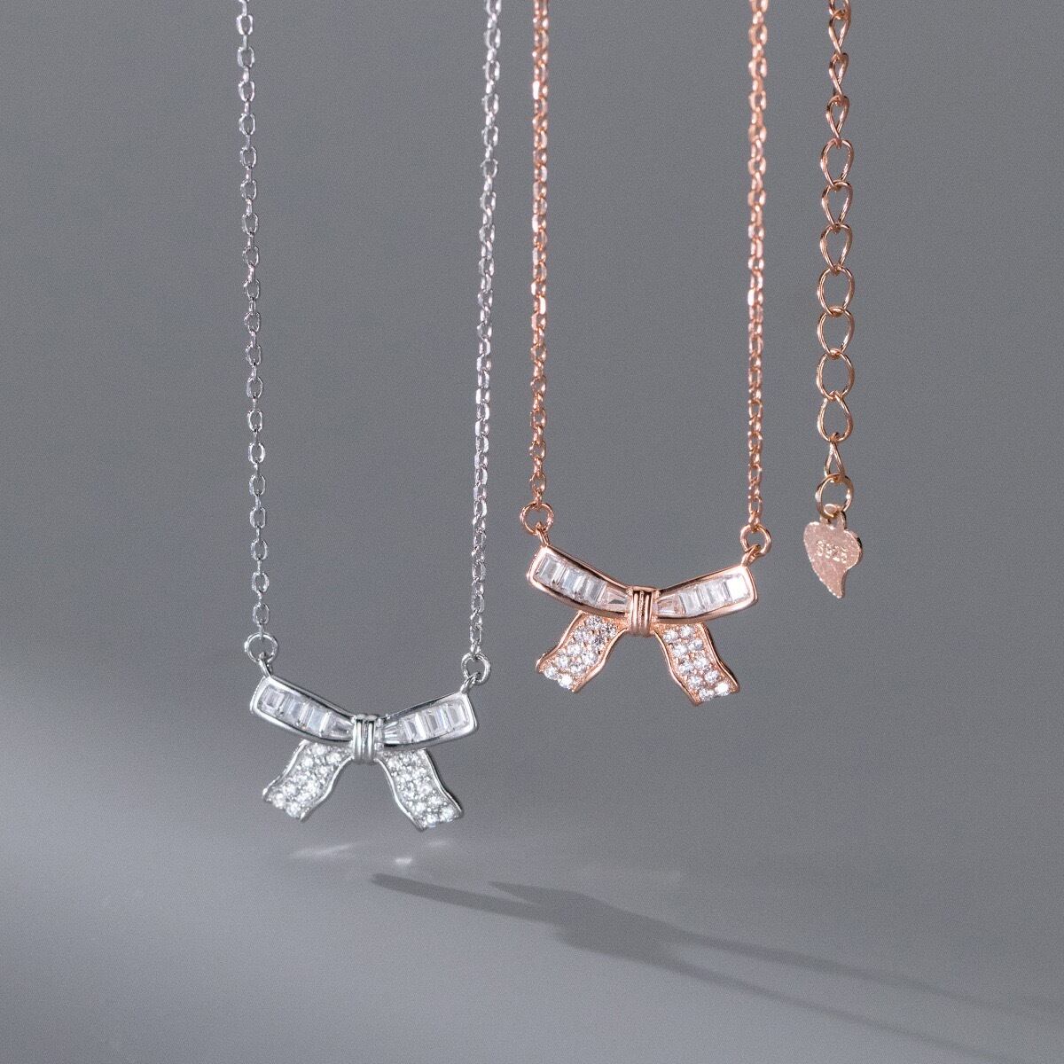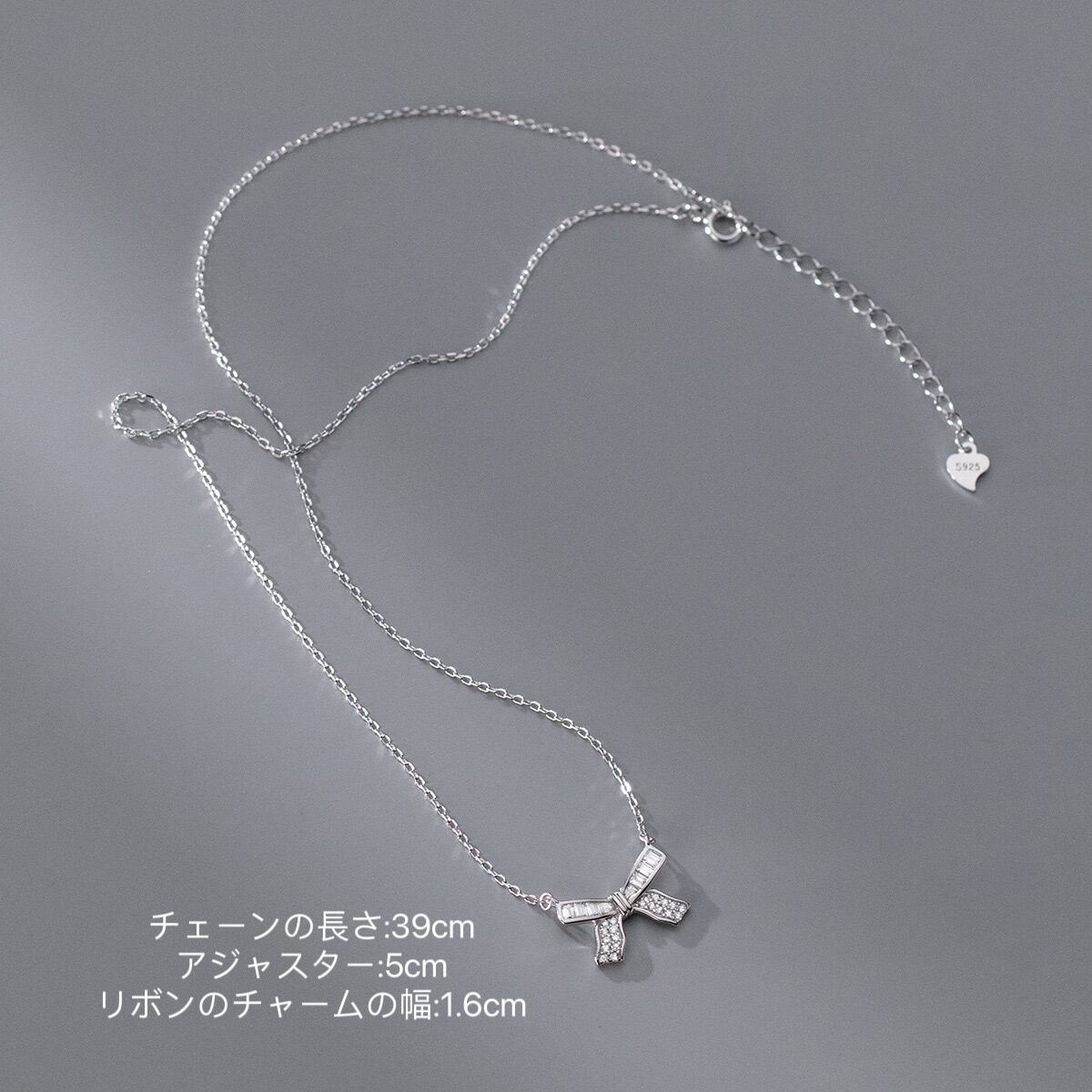 【Y01148】シルバー925 高見え リボン チャーム ペダント ネックレス silver925