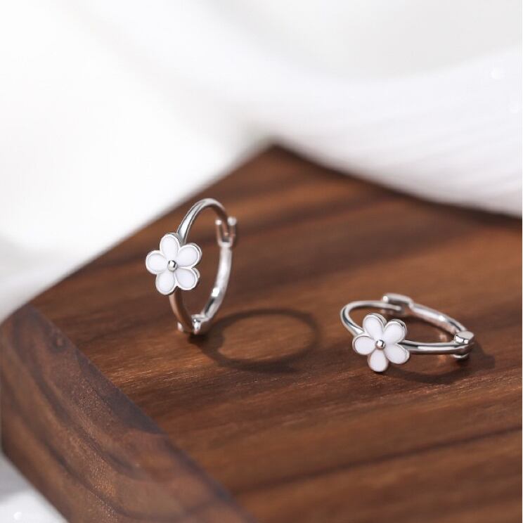 【E2936】シルバー925 小ぶり お花 フープピアス つけっぱなし ピアス 金属アレルギー対応 小さめ セカンドピアス 重ねつけ