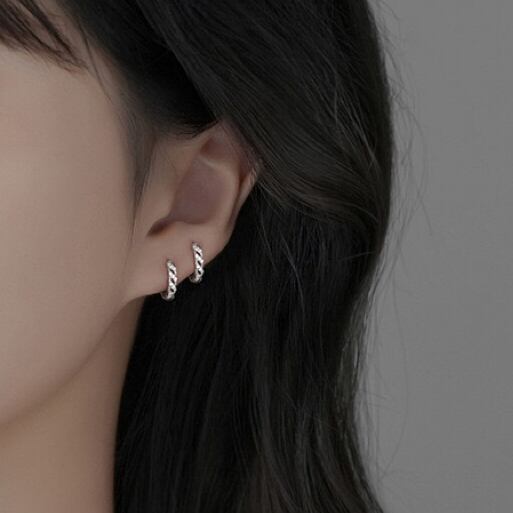 【E2832】シルバー925 小ぶり アラン模様 フープピアス つけっぱなし ピアス 金属アレルギー対応 小さめ セカンドピアス 重ねつけ