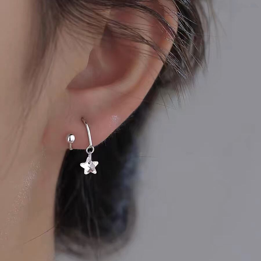 【9939YCE】シルバー925 小ぶり 螺旋 ネジキャッチ 揺れる 星 ピアス つけっぱなし 小さめ ピアス 金屬アレルギー対応