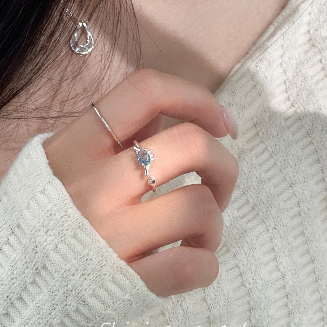 【R01918】シルバー925 細め ライトブルージュルコニア ハート リング 指輪 silver925 フリーサイズ 大きさ調整可能