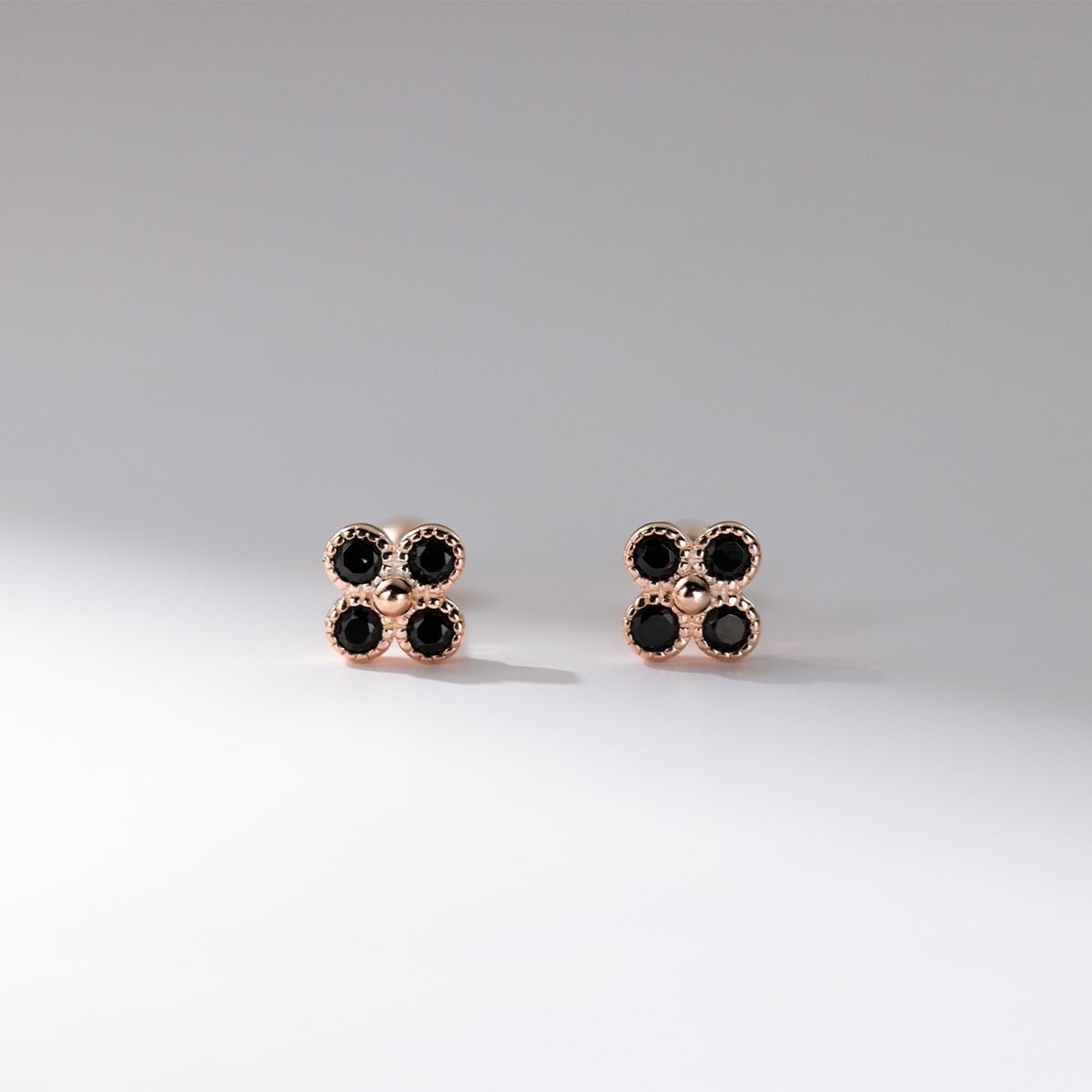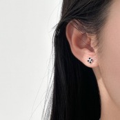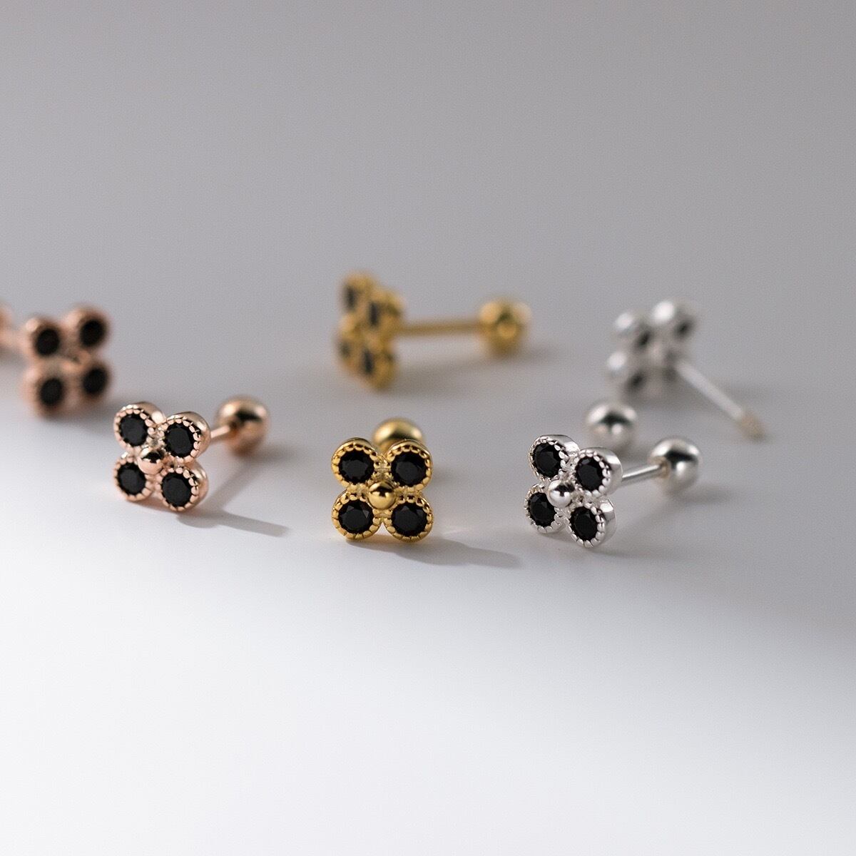 【5230】シルバー925 小ぶり ネジキャッチ ブラックフラワー ピアス つけっぱなし 小さめ ピアス 金屬アレルギー対応