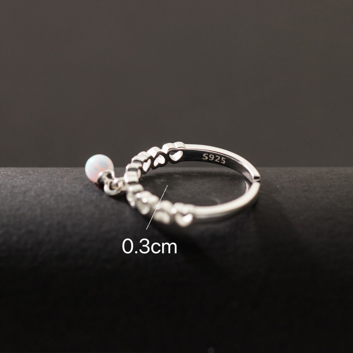 【01953】シルバー925 透かし ハート 揺れる オパールチャーム リング 指輪 silver925 フリーサイズ 大きさ調整可