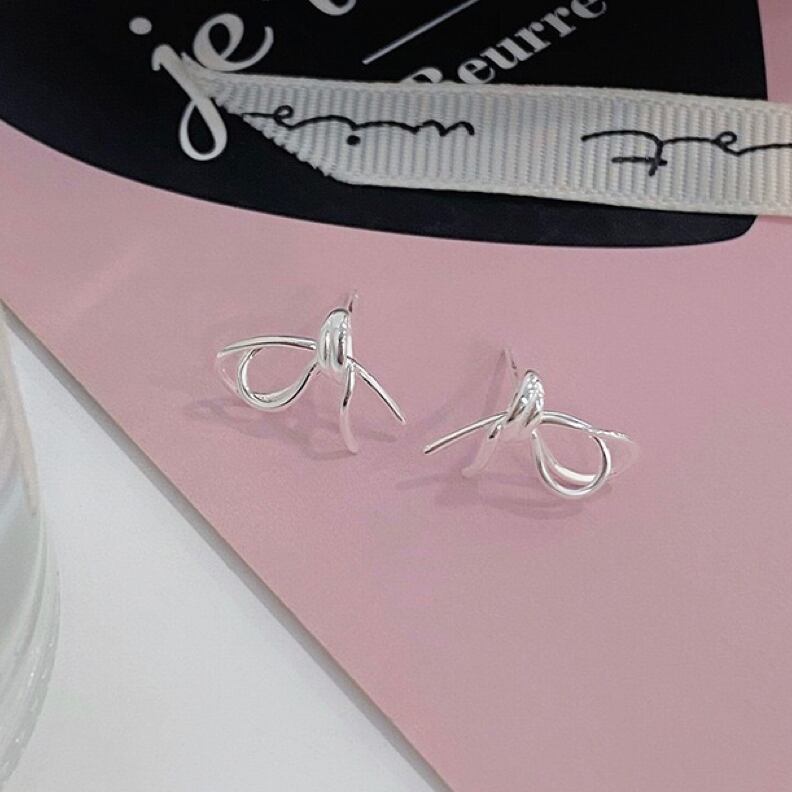 【10048】シルバー925 小ぶり 変形 リボン 結び目 ピアス つけっぱなし 小さめ ピアス 金屬アレルギー対応