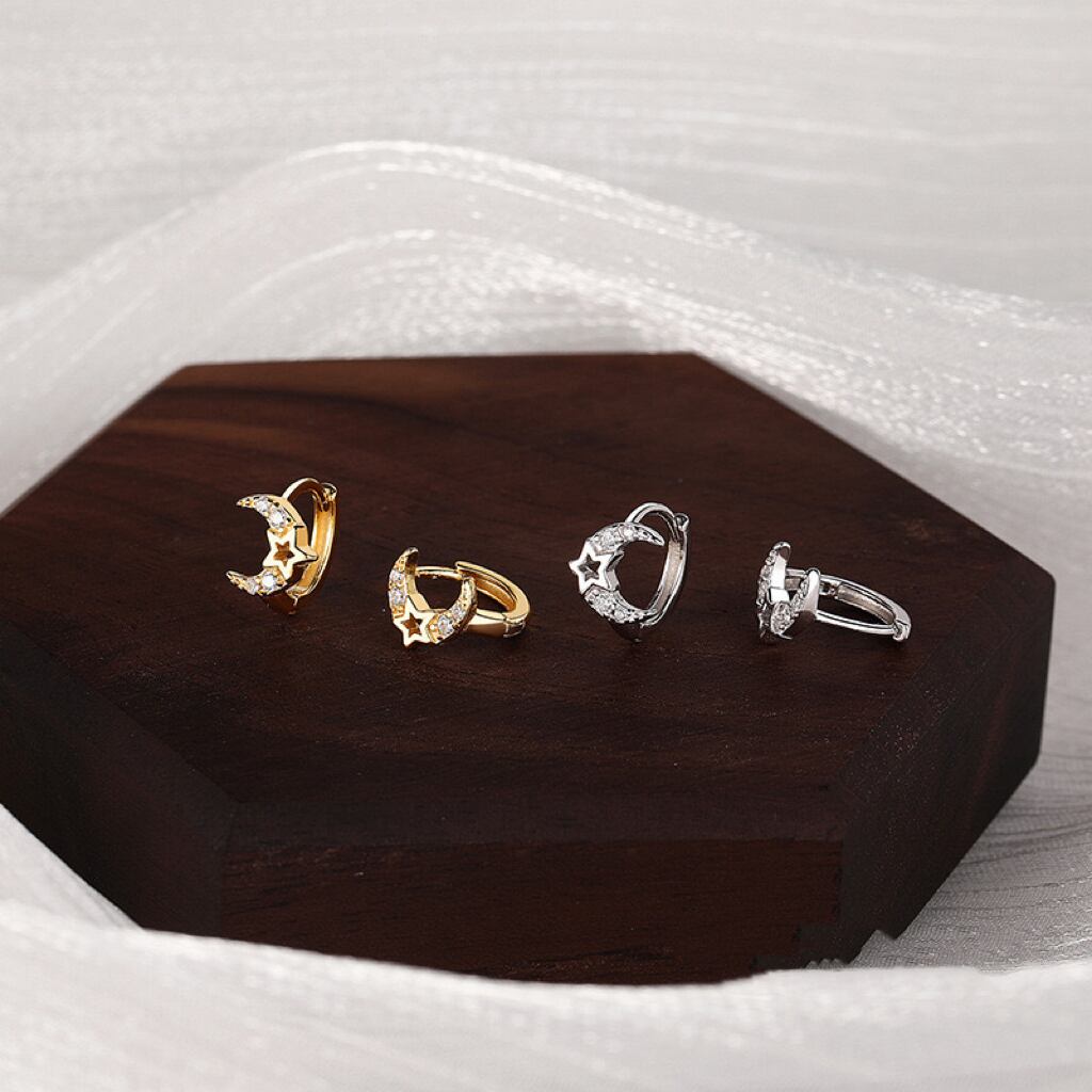 【10192】シルバー925 小ぶり 月 星 フープピアス つけっぱなし ピアス 金属アレルギー対応 小さめ セカンドピアス 重ねつけ