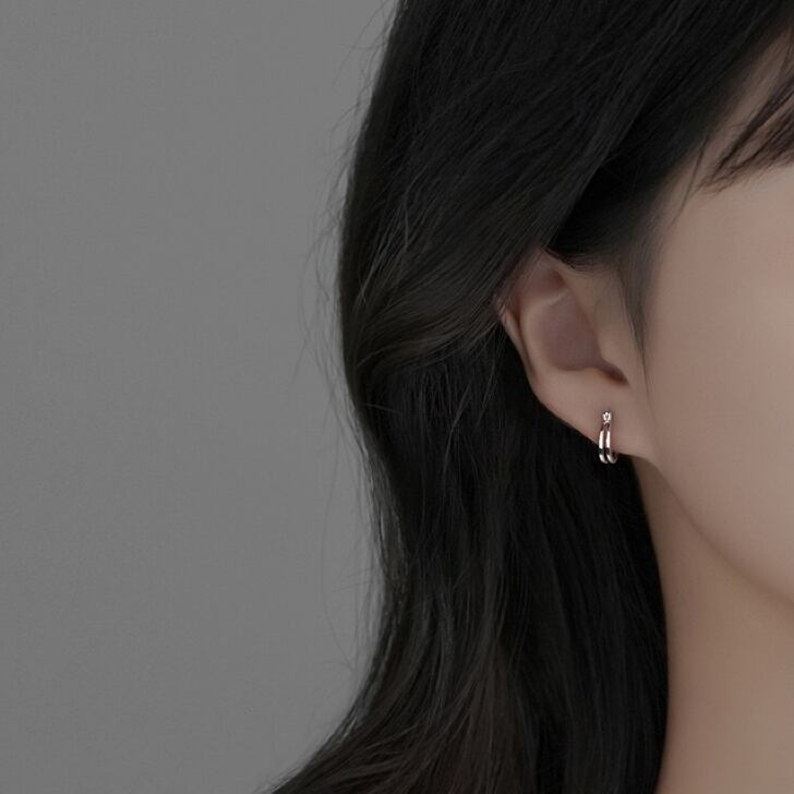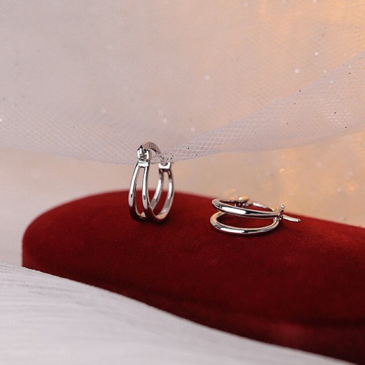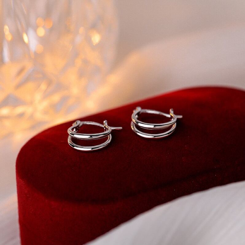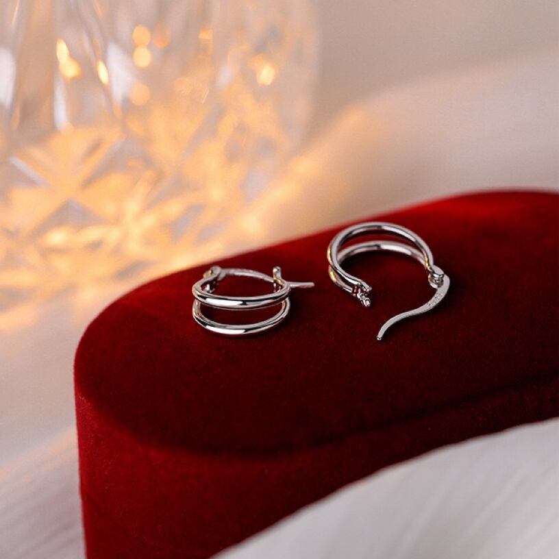 【E2559】シルバー925 シンプル 2連 フープピアス つけっぱなし ピアス 金属アレルギー対応 小さめ セカンドピアス 重ねつけ