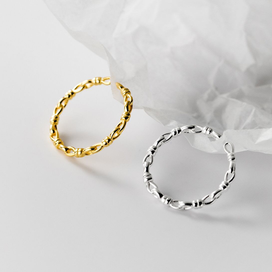 【R00486】シルバー925 細め 華奢 結び目 リング 指輪 silver925 フリーサイズ 大きさ調整可能