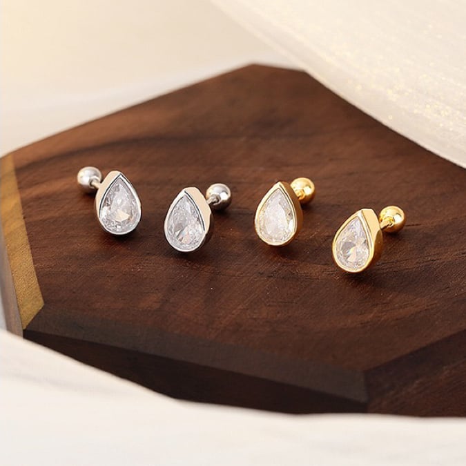 【100031YCE】シルバー925 小ぶり ドロップ ネジキャッチ ピアス つけっぱなし 小さめ ピアス 金屬アレルギー対応